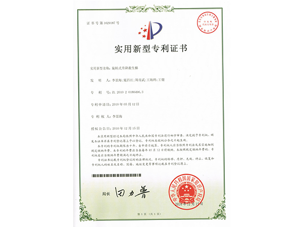 上一篇:實用專利證書
